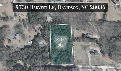 Discover a rare 3-acre property tucked away in the Planation subdivision of Davidson. Located just off Harvest Lane. This expansive parcel offers 3.01 acres of level usable land - perfect for building your dream home, establishing a small estate, or creating a private retreat surrounded by mature trees. Enjoy the tranquility of country living with being minutes from Mooresville, Davidson, and Lake Norman amenities. Zoned for single-family, residential. In Cabarrus County, it features approximately 257 feet of frontage along Harvest Lane and easy access to Archer Road. No HOA. Private road with maintenance agreement within the covenants. No temporary structures. See attachments for Declarations.