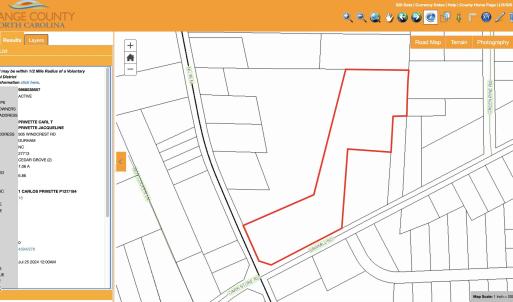 Don't miss this rare chance to own a piece of Orange County's beautiful countryside. This 7-acre parcel in Cedar Grove perfectly balances peace, privacy, and proximity to modern conveniences. Just 15-20 minutes from the charming town of Hillsborough, known for its arts scene and great restaurants, and close to Chapel Hill, home to the University of North Carolina with extensive shopping, dining, and cultural experiences. Raleigh and Durham are also within a short drive, offering even more opportunities for work and entertainment. Whether you're looking for a place to call home, a weekend getaway, or an investment, this expansive property is ideal for starting a small farm, creating a private retreat, or simply enjoying the natural beauty and tranquility of rural living. Endless possibilities await those seeking a peaceful lifestyle in the heart of the countryside.