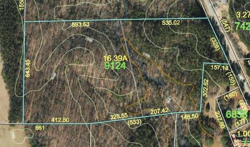 Wooded 16.39 acres with 328 ft of road frontage on County Road. Mixture of pines transitions to mostly hardwood after the creek which crosses the property. Elevations range from 1000 ft. at creek to a 1060 ft. elevated knoll nearer western border. New Survey done in 2025. Property has a Forestry tax deferment.