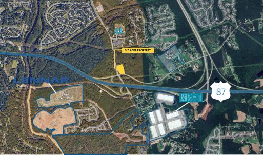 3.7 total acres on two parcels of corner with ~746' of road frontage overlooking Hodge Rd and the Old Faison ramps to I-87. Situated conveniently to multiple new housing developments. See docs section for OM.