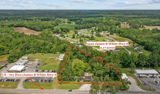 For Sale: 2.17 Acres Commercial Land with Existing Building in Whiteville. Opportunity awaits on this high-visibility 2.17-acre parcel directly off US Highway 701, just outside Whiteville. Zoned B-3 and positioned along a corridor with an average daily traffic count of roughly 10,000 (RPR 2024), the property offers prime exposure for a wide variety of commercial uses. A 1,763 sq ft stand-alone structure currently sits on the lot—suitable for renovation or removal to make way for a new build tailored to your needs. The site also includes a fenced area, detached storage building, and ample room for reconfigured or expanded parking. Please note: a portion of the original front parking lot will be acquired by NCDOT for a road widening project, but the depth of the lot allows flexibility for future parking and site planning. The property is served by well and septic, with city water and sewer available directly across the street for connection. Less than a mile from Walmart, Food Lion, restaurants, and national retailers, the location benefits from steady growth and convenient access to US 701, US 74, and US 76. Key destinations include Lake Waccamaw (16 mi), Lumberton (36 mi), Ocean Isle Beach (40 mi), Wilmington (51 mi), and Myrtle Beach (52 mi). Whether you're an investor, developer, or business owner seeking a strategic site in southeastern NC, this offering provides the flexibility to tear down and build to suit, or adapt the existing building to meet your vision. Please note that lot outlines are approximate.