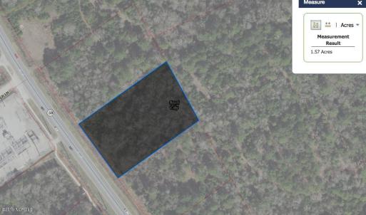 Wooded lot zoned C3 in Surf City on the main corridor before the Surf City Bridge. 0.96 acres per Pender GIS records, however, when using the mapping tool on GIS website, it shows 1.57 acres when measuring the points. Please see picture for reference. Survey needs to be obtained to verify.