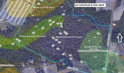This tract is located in eastern Sampson County about 3.5 miles south of Turkey, NC and 5+-miles SW of Warsaw I-40 Exit 364 and about 7-miles southeast of Clinton. This is a mostly woodland tract that was cut over around 2016; thus, about 8-years of natural regeneration of scrub oaks, mixed hardwoods and pines of pulpwood and chip-n-saw size trees scattered throughout. It has a north northwesterly slope. This land is suited for hunting, trail riding, hiking, farming with good road frontage for potential development along Needmore Rd. (1,300'+-)) and Colwell Lane (868'+-dirt) which is mostly cleared land. Soils appear to be generally moderate well to well drained Autryville, Blanton, Marvyn and Wagram soils on 0-12% slopes which are generally suited for septic systems; however, Sampson County Environmental Health should be contacted to test the soils to verify what portions of the tract are suited to septic systems. Voluntary Ag District 4 - land within 1/2 mile of qualifying farm. Acreage and distances are approximate.