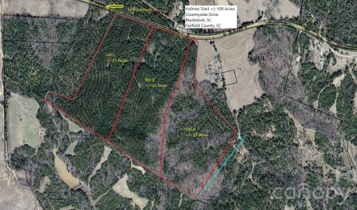 Lot C = Beautiful 33 acres consists mainly of open areas with 1 year old planted pine few mature hardwoods. Terrain is rolling with scenic hilltop views. This lot has a good amount of level ground with open areas along the wood’s road to the back of the property. Located south of Blackstock SC on Countryside Drive which is a county paved road. Several ideal homesites and plenty of room for a building, barn, or shop. An abundance of wildlife from deer, turkey, rabbits, squirrels, quail, and doves. No HOA but minimum deed restrictions to ensure like kind properties. Conveniently located to Greenville, Charlotte, and Columbia; and less than 20 minutes from downtown Chester.