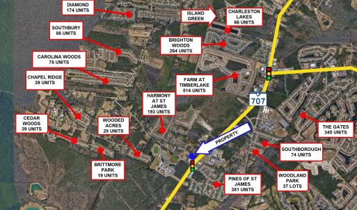 This site offers a 1.95 acre off-corner parcel adjacent to the signalized intersection of Highway 707 and Salem Road in the densely-populated Burgess submarket of Myrtle Beach. Parcel dimensions are 252' fronting Highway 707 and 364' of depth. Zoned RCS by Horry County, allowing for retail, office, medical, trade uses, and self-storage. Salem Road serves as a major secondary traffic artery in the Burgess Community, providing access to the nearly 2,800 units located west and north of the subject property. St. James High School serves 1,800 students and is the #1 ranked high school by US News & World Report in the Myrtle Beach, SC MSA. Located in the Burgess Community sub-market of Myrtle Beach on west side of Highway 707, less than 500 feet from signalized intersection of Salem Rd. Adjacent to St. James High School and surrounded by high density residential development. Direct access to Highway 31 and SC Highway 544 within 5 miles.