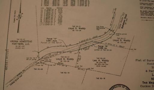 7.819-acre parcel lies on both sides of Bohannon Road shown on plat of survey as Tax Map 62-21. Additional plat shows the 50-foot right of way conveyed to the Commonwealth of Virginia. Wooded parcel with cleared area on the north side of Bohannon Road contains a camper and RV that will be removed prior to closing. Note that the property lines are not flagged. Contact the listing agent for additional information. Valere Real Estate, Inc. sign at entrance to open area near the End of State Maintenance Sign.