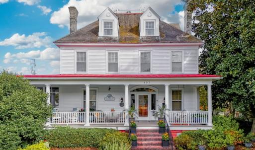 "Bay Haven" Grande Dame of Cape Charles sits on a double lot on the corner of iconic Tazewell Ave & Peach Street. Experience timeless elegance in this stunning 1906 Colonial Revival home w/ 4739 sq ft w/ 5 bedrooms ,7.5 baths & guest cottage. Stately 3-story home blends historic charm w/ modern comfort. The massive kitchen features cathedral ceilings & high-end finishes, while spacious living areas showcase classic architectural details throughout. A sweeping southern wraparound porch & beautifully landscaped gardens create an inviting outdoor retreat. Just blocks from the Chesapeake Bay, sandy beaches, vibrant downtown, & steps from the town park's concerts & events, this home offers a rare combination of space, character, & coastal lifestyle in one of Virginia's most beloved small towns.