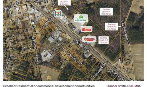 7.8 Acre +/- commercial parcel with good frontage and visibility on Route 460 (South County Drive) in the town Waverly, VA. Zoned B-1, General Business with many permitted uses. Immediately adjacent to Hardees on RT 460.