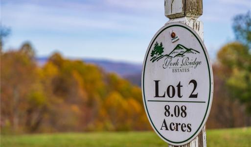 Welcome to York Ridge Estates. Premier Gated Community in Mouth of Wilson, VA about 30 minutes north of West Jefferson. Community offers larger lots , minium of 5 acres in size , big long range views. Lot 2 starts on your left , just past lot 1 after you enter the community. Long road frontage on lot 2, allows for multipe locations for start of driveway. Opened up area towards the end of lot 2, with view already cleared is a prime building site. 1600 SF min, with some very nice existing homes already built. Plenty of recreational amenties close by, 10 + minutes from the New River, Grayson Highlands and Mt. Rogers. See Today