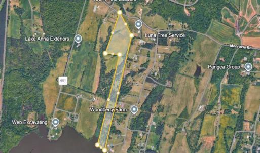 37.77 total acreage. Parcel C= 3.02 acres= waterfront lot. Property can have 2 Waterfront Lots and 2 Lots at Monrovia Rd. Access Road will be put in (see plat) Property also has 50ft ingress/egress easement coming from Woodberry Farm. Property is on Spotsylvania Annual Division plan. More photos and info coming. New plat will be uploaded soon.