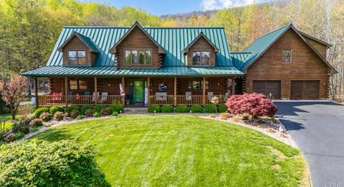 Experience a private mountain retreat set on 130+ acres. This stunning log home offers over 6,000 sq ft of space. The kitchen features stainless appliances, a large island with cooktop, and a sink overlooking scenic views. The great room boasts soaring floor-to-ceiling river rock fireplace with...