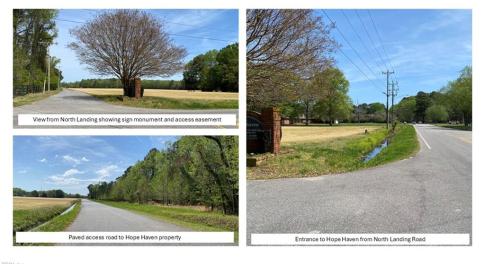 A total of 56.678 +/- acres located off of North Landing Road in the Princess Anne area of Virginia Beach. 12 acres are currently used as a summer camp and retreat, 26 acres are cultivated, 10.3 acres are open land, and 7.4 acres of the total parcel is wetland. Access from North Landing Road is...