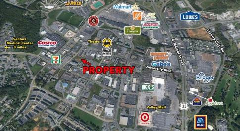 The property consists of 2.5 acres across three contiguous parcels, all zoned B-2 and positioned on a visible corridor with quick access to US 460 and Rt. 122. Site is flat with 238' of road frontage on Burks Hill Rd. (Rt. 122) and 456' of frontage on Industrial Ave. Very close proximity to US 460...